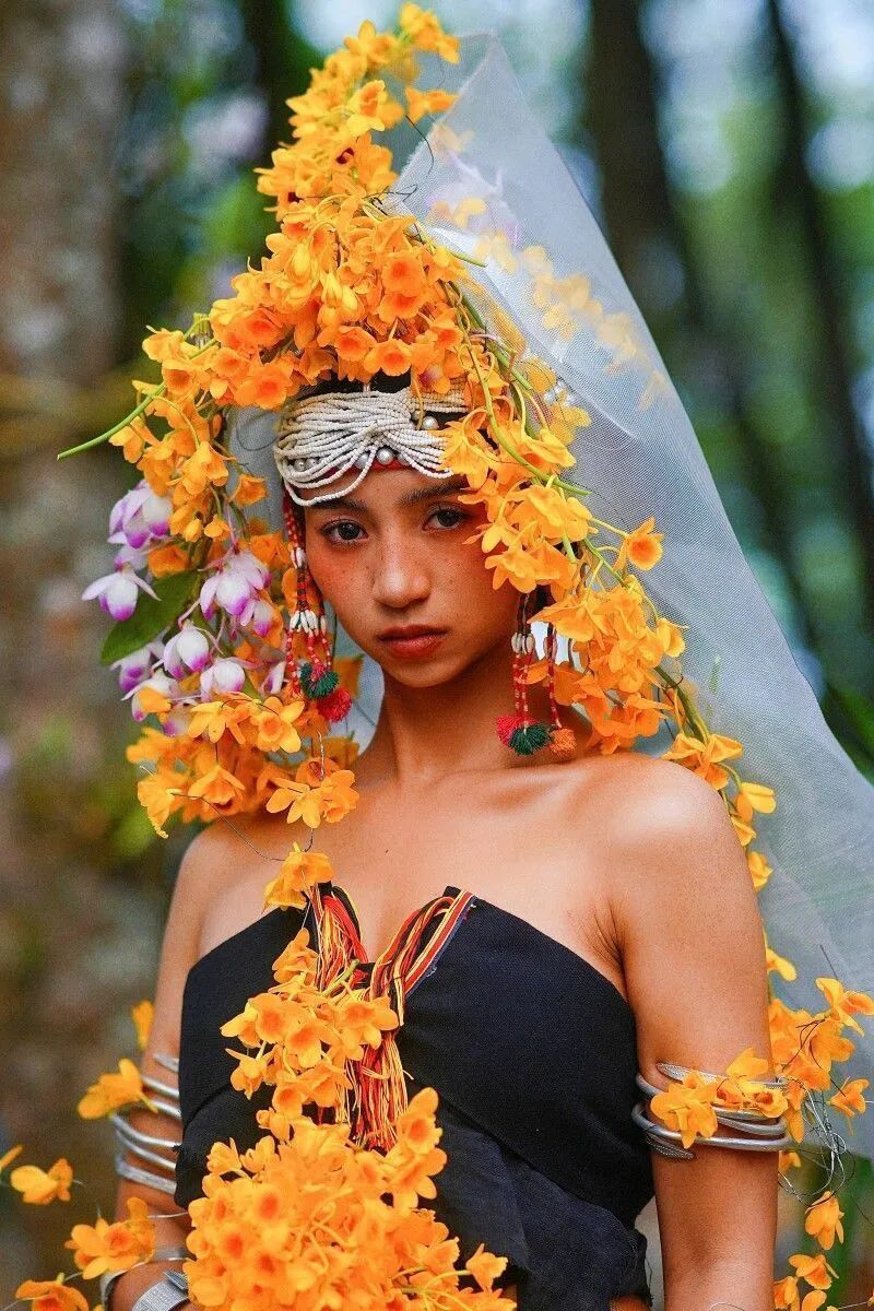 在布朗族姑娘的发间或是和佤族图腾交织在一起
