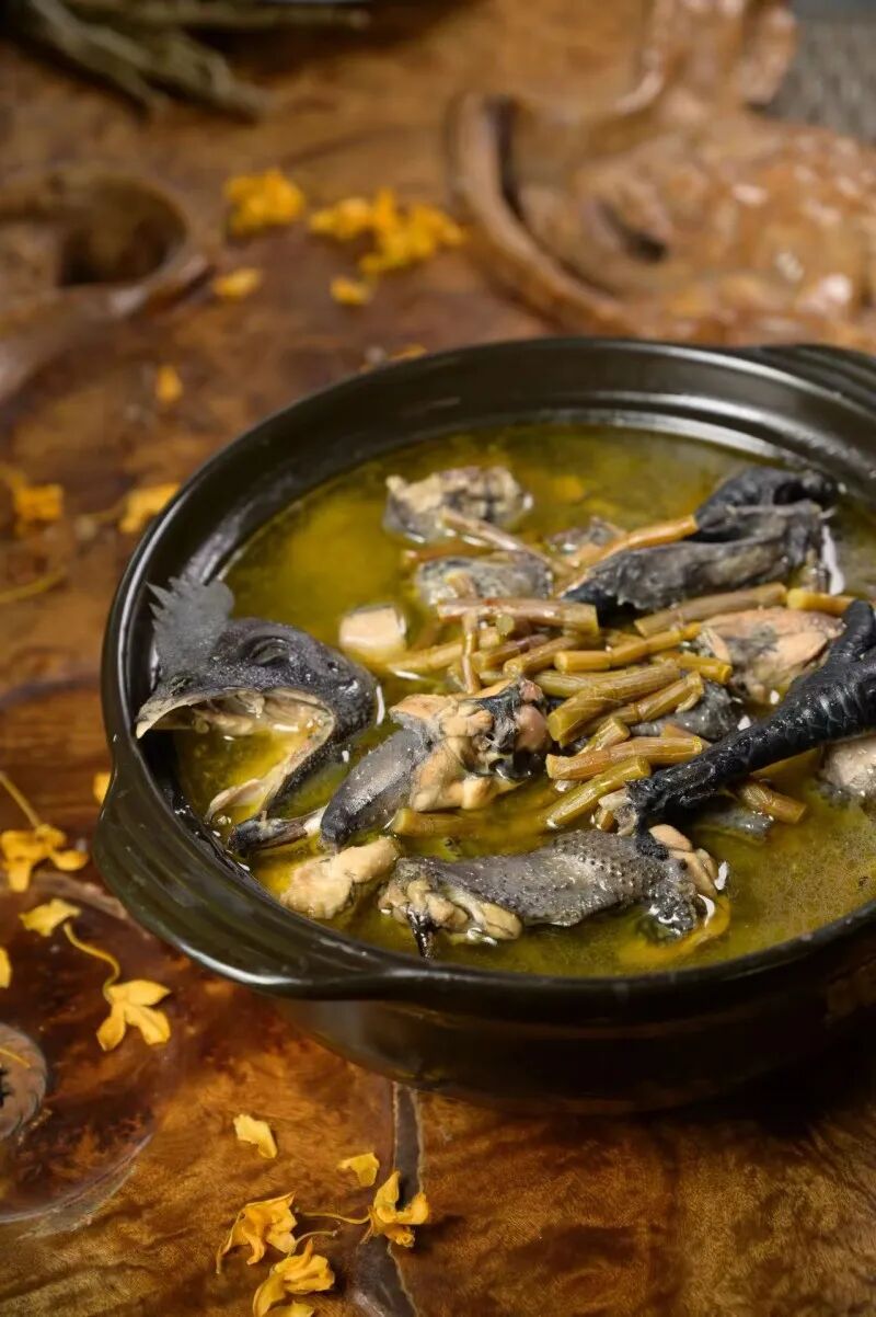 石斛花煮鸡土鸡炖到酥软,汤浓肉香最后撒一把新鲜石斛花幽香扑鼻,