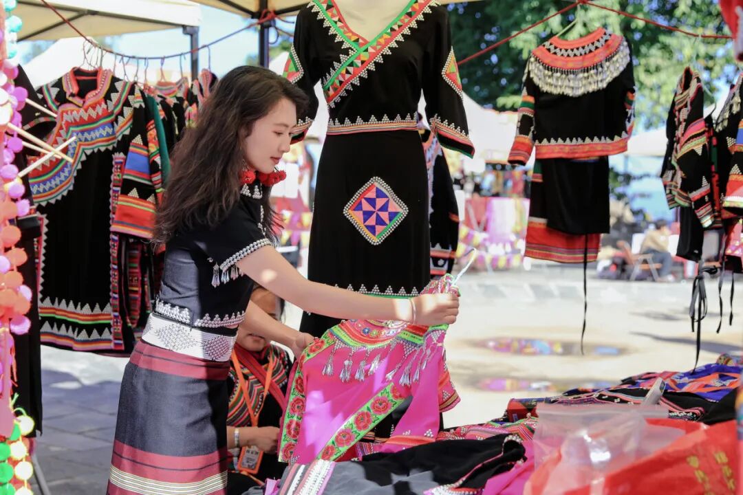景迈山各族群众身着民族服饰,以最悠然自在的姿态摆开摊位。