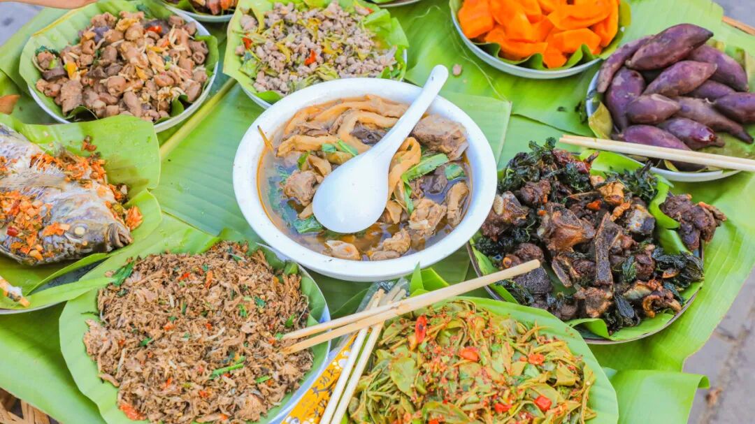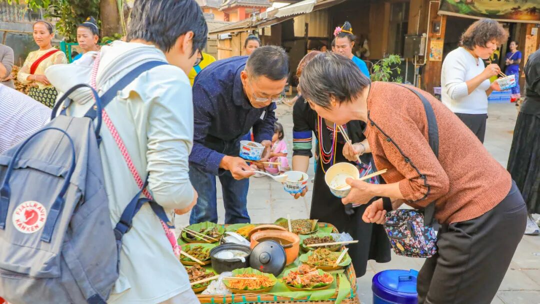 与全村老少、四方友人共享一桌饭菜,品尝少数民族特色风味。