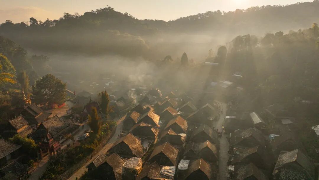 清晨薄雾笼罩中的糯干古寨